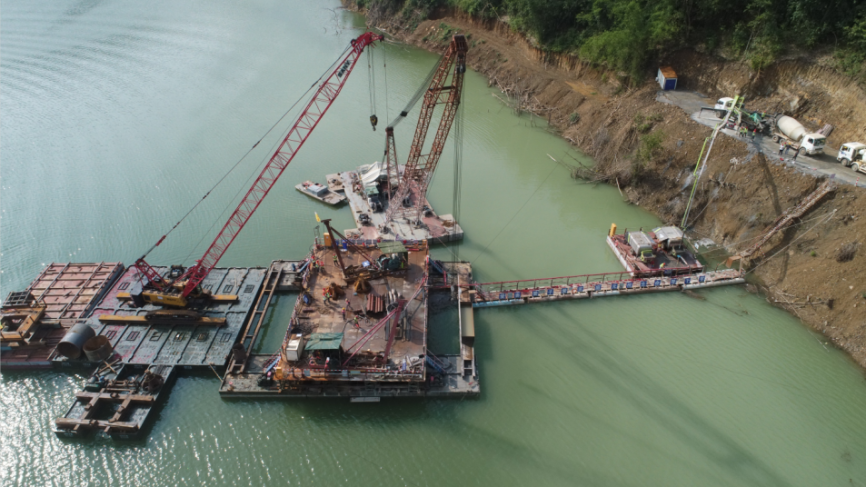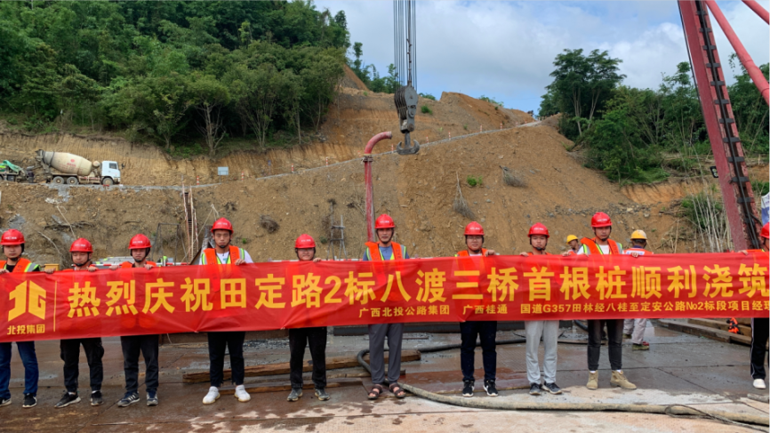 7月30日,北投公路集團(tuán)投資建設(shè)的國(guó)道G357田林經(jīng)八桂至定安公路八渡三橋首根深水樁基順利灌注施工。