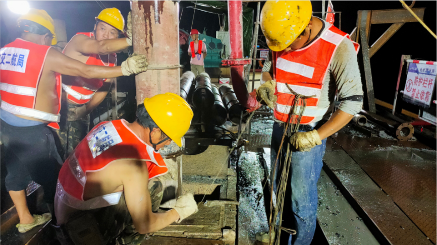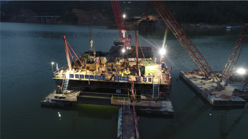 經(jīng)過(guò)近10個(gè)小時(shí)緊張有序的施工,八渡三橋首根深水樁基順利完成灌注施工,標(biāo)志著八渡三橋施工正式拉開帷幕,為后續(xù)水上浮式平臺(tái)施工作業(yè)積累了經(jīng)驗(yàn)并打下堅(jiān)實(shí)的基礎(chǔ)。