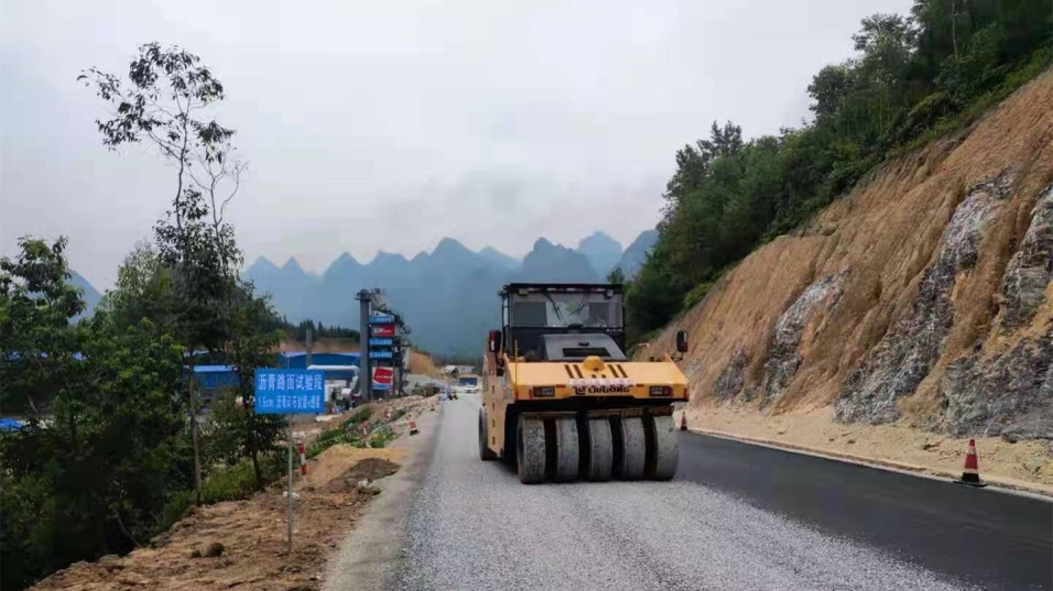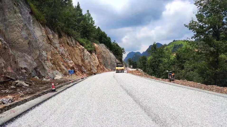 圖為瀝青封層試驗(yàn)段施工現(xiàn)場(chǎng)