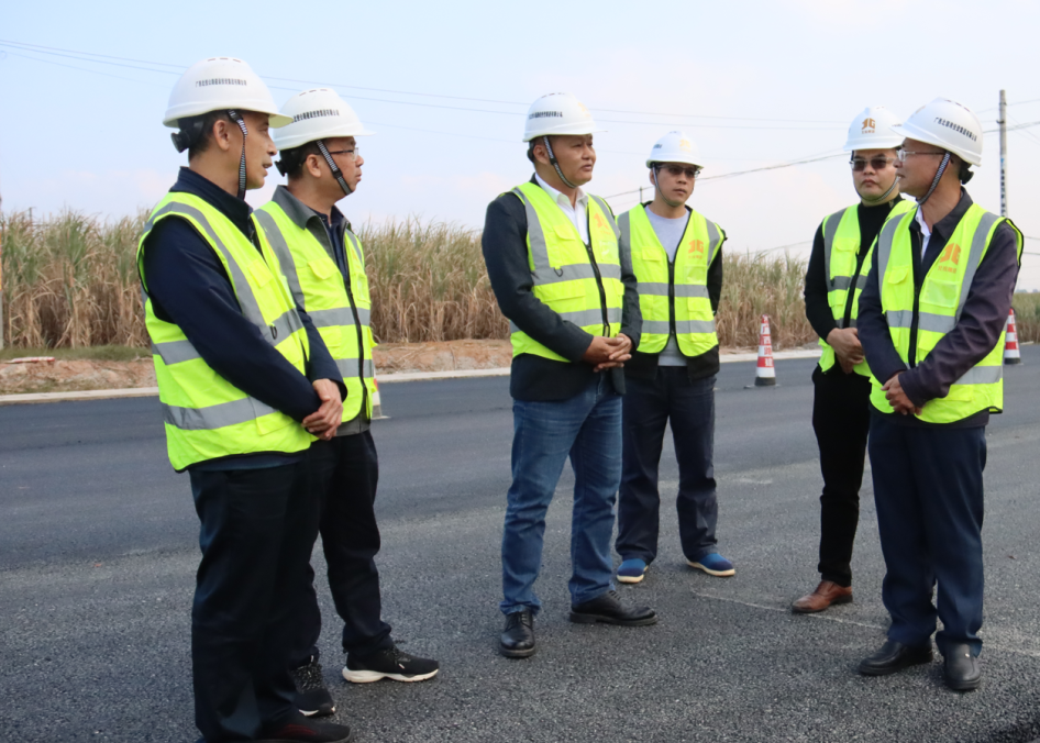 12月15日,北投公路集團外部董事吳文佐、高桂強、邱文輝,副總經理、總法律顧問陶亮到S210橫縣平馬至靈山沙坪公路調研指導工作。