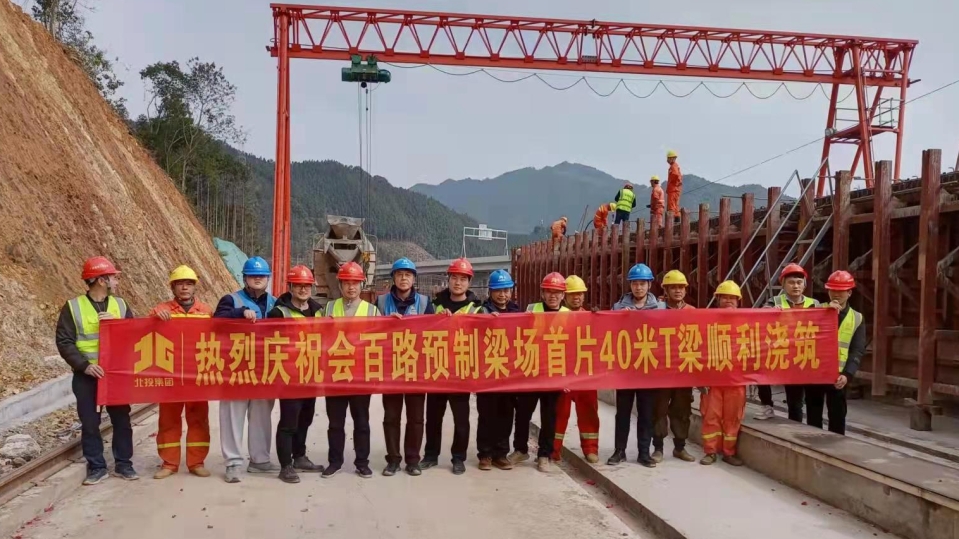2月28日,歷經4個多小時,北投公路集團投資建設的會百路橋梁預制梁場首片T梁完成澆筑,困擾項目許久的大梁預制場順利突破瓶頸,正式進入預制大梁階段。