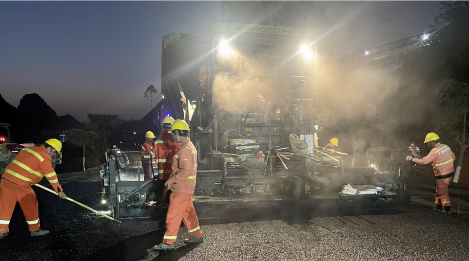 西部陸海新通道廣西普通國省干線公路服務能力提升工程(養護工程項目)國內首個利用國際金融組織貸款實施養護工程的項目,也是新開發銀行在中國首次采用可持續發展貸款模式(SDL模式)的項目。建設辦將養護項目分為四個區域進行管理,面對養護項目的點多面廣、路面彎道多、坡度陡、車流量大、難度系數高等眾多難題,建設辦管理團隊不畏困難、迎難而上,進行科學統籌掛圖作戰”,工作思路為:一是提高施工單位政治站位,積極搶抓施工黃金期,精心制定嚴密的施工進度組織施工,嚴格審核配合比設計、施工方案,嚴格把控瀝青混凝土面層原材料;二是督促監理單位進一步加強監管關鍵環節,實行領導帶班制度,形成主要領導親自抓,分管領導具體抓,現場監理人員直接抓的工作意識確保工程質量安全達標。