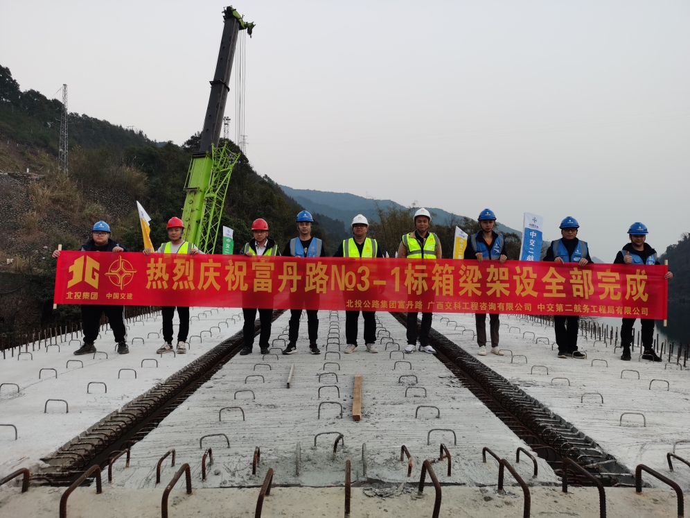 2月27日下午18時,程祥中橋最后一片預制箱梁穩穩地落在預定支座上,至此北投公路集團投資建設的S208富祿至丹洲公路(二期)全線箱梁架設全部完成。