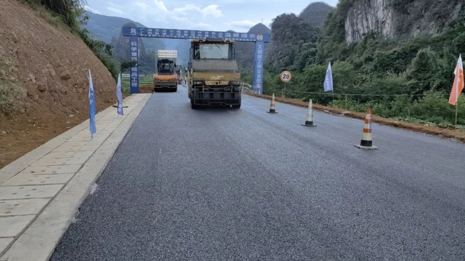8月1日,桂林片區(qū)全高路(興安段)瀝青下面層試驗段攤鋪順利完成,此次攤鋪瀝青試驗段全長200米,下面層結(jié)構(gòu)類型為AC-20瀝青混凝土,鋪筑厚度為5厘米。圌