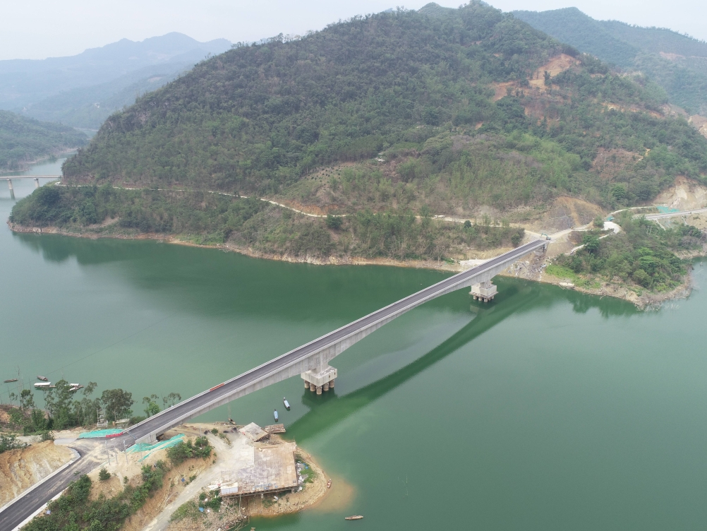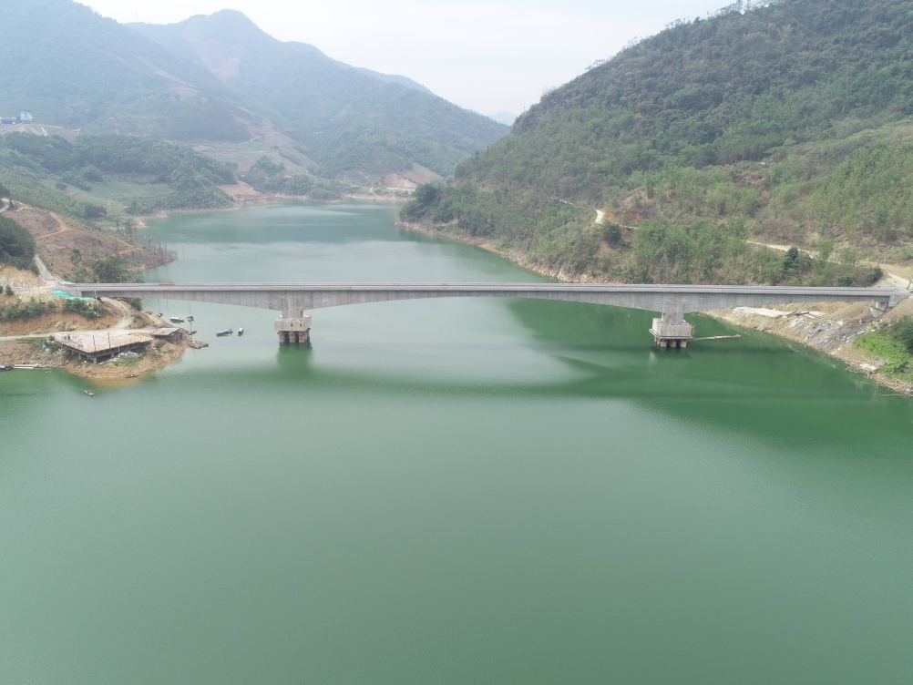 八渡三號特大橋巍然矗立在馱娘江寬闊的水面上