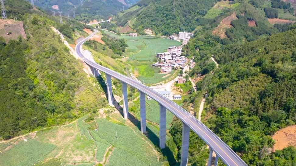 田定路那囊一號高架橋穿過大山深處的村落