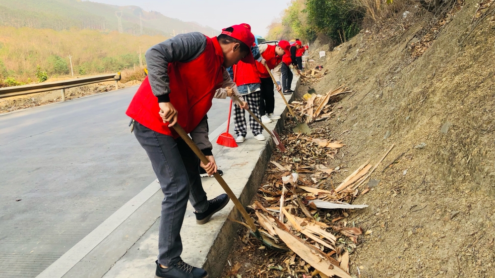 活動中,青年志愿者們身著統(tǒng)一紅色志愿服務(wù)馬甲,來到國道357田林至定安公路路段,分工協(xié)作,默契配合,拿起掃帚、鐵鏟等工具,對公路兩邊碎石、牲畜糞便、板皮和雜草及中央分隔帶內(nèi)藏匿的廢紙、塑料袋等垃圾進(jìn)行清理整治。經(jīng)過大家的努力,清理后的路段煥然一新,為群眾出行提供了良好的通行環(huán)境。